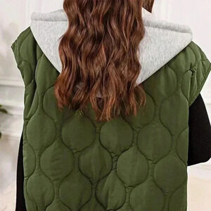 Olive Green Boho Women's Quilted Cozy Free Style Drawstring Hooded Puffer Vest