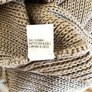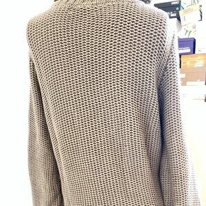 Beautifully knit pullover sweater made in Hong Kong. Long sleeves. High collar can be worn up or down. 100% cotton. Small roll hem at cuffs and bottom of sweater. Approx length shoulder to hem = 24".