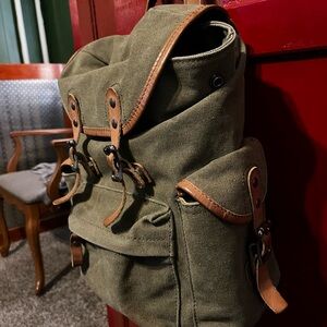 Olive Green Canvas Backpack with Tan Accents
