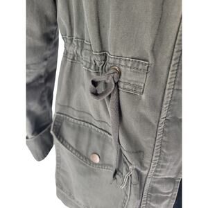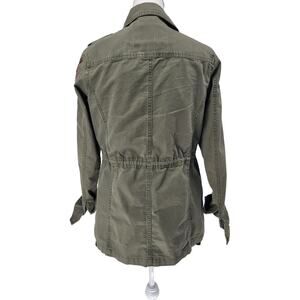 A New Day Utility Canvas Jacket Olive Green Floral Embroidered Military Style Drawstring Waist Size S