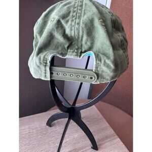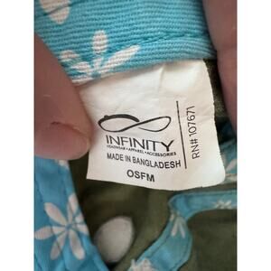This is a unique and fun olive green cap by Infinity, featuring an embroidered yellow chicken and egg with the phrase "or the" on the front. The interior is lined with bright blue fabric covered in white floral prints, adding a playful and stylish touch. It is labeled OSFM (One Size Fits Most) and has a classic snapback closure for adjustable fit. Made in Bangladesh. Lightly worn with no major flaws; see photos for condition and details. Great for collectors or anyone looking for a quirky, conversation-starting hat! Perfect for casual wear, spring and summer festivals, or as a gift for fans of novelty accessories. Ships fast from a smoke-free, pet-friendly home.