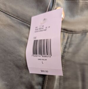 Stylish olive green cargo pants. Features multiple pockets with Guess brand on them.