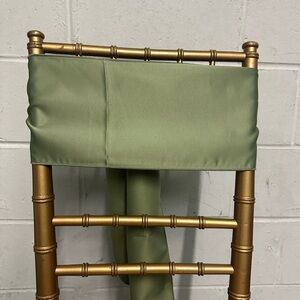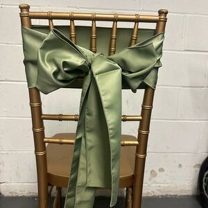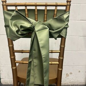 25 Olive Green satin chair ties often used to add a decorative touch to chairs at events like weddings, parties, and banquets. 7 inches wide and 100-102 inches long.