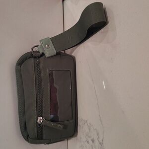 Olive Green Clutch with Detachable Canvas Strap Multiple Pockets