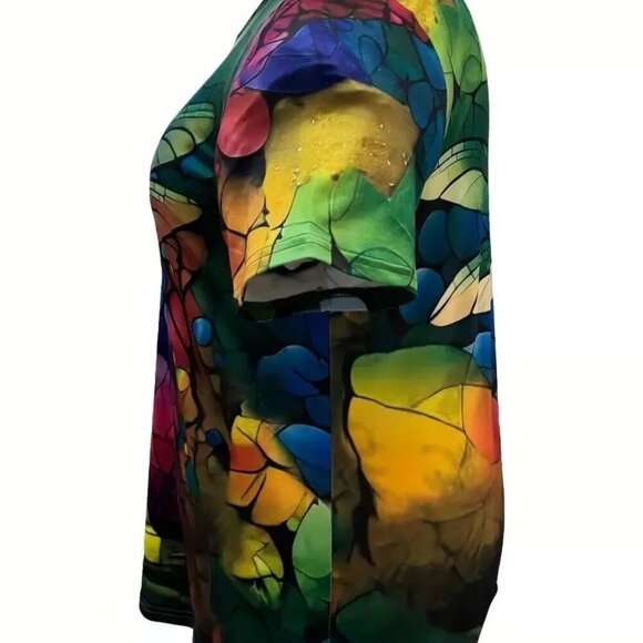 Introducing our Plus Size Dragonfly Print T-Shirt - the perfect blend of style and comfort! Made with a soft and slightly stretchy knit fabric, this shirt features a striking dragonfly print that will surely turn heads. Machine washable for easy care. Designed exclusively for plus size women. Get ready to receive compliments on this one!