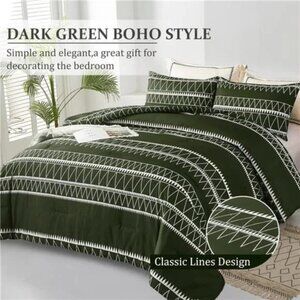 🧿【Olive Green Comforter】Olive green Comforter Set overall look is mainly green with white line pattern design.Terracotta and white are combined together, which is full of unique design in simplicity. The classic and simple style adds different visual effects to your bedroom.