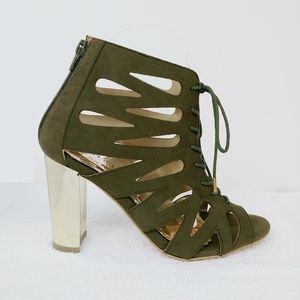 *Womens Corset Block Heels with cut outs and gold chrome heel