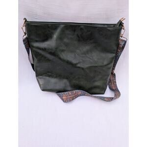 Olive Green Crossbody Bag Purse With Geometric Patterned Strap Adjustable. Purse is in excellent condition with minimal signs of wear.