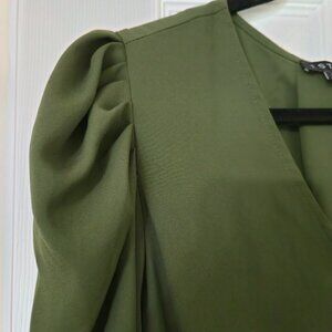Olive Green - Drape Blouse "bubble" sleeves - Medium
