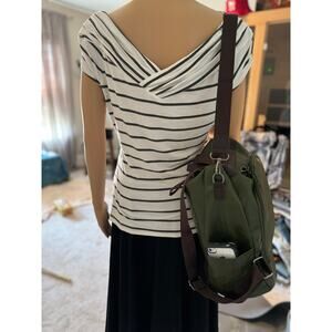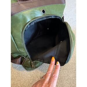 Olive Green Faux Leather Backpack Handbag with Brown Trim