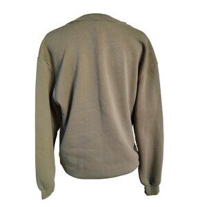 Stay cozy and stylish with this olive green graphic sweatshirt featuring playful designs. Perfect for casual outings.