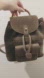 Olive green small Gucci bamboo backpack. She has gold hardware as well as a bamboo turnlock on the outside pocket. It's absolutely beautiful and super classic. Gucci bamboo handle. This bag is clean inside and it is in excellent condition.