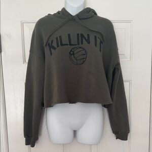 Olive Green 'Killin It' Cropped Volleyball Hoodie Size L