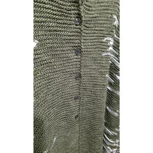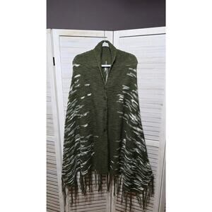 Olive Green Knit Fringe Shawl Poncho Wrap Boho One Size