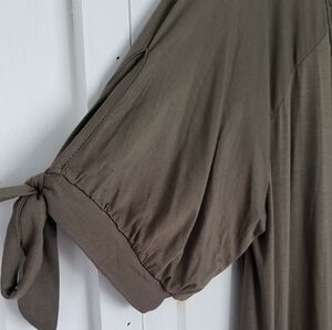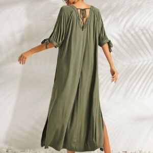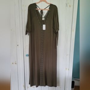 Olive Green Lace Panel Open Tie Sleeve Caftan Maxi Dress
