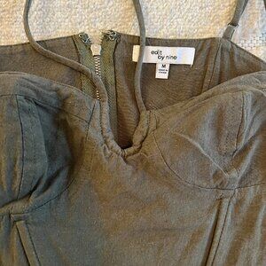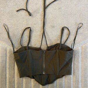 Olive Green Linen Halter Cami Strap Corset, in size M