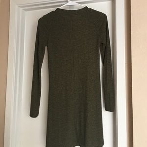 Knit, mini dress, long sleeve, olive green. Worn once