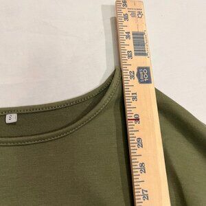 Olive Green Long Sleeve Knit Dress Empire Waist Puff Sleeve Small