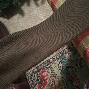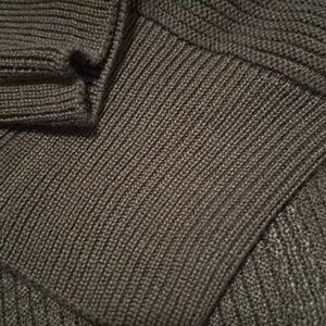 Cozy olive green sweater with long sleeves. Features a textured knit design.