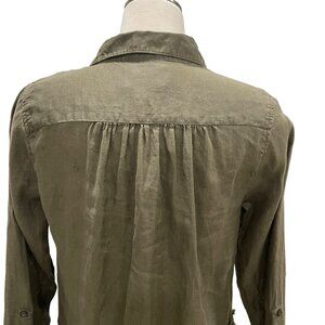 Olive Green Long-Sleeve Tunic Boho Pocket Trim V-Neck Lightweight Comfy Sz S