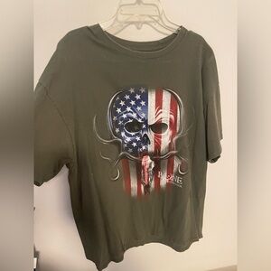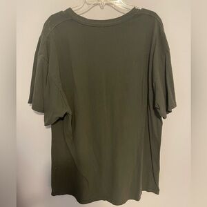 Show off your style with the olive green men's t-shirt. Featuring a bold graphic design, this shirt is perfect for casual outings. Little marking on sleeve as pictured. XL.