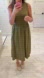 NEVER WORN, just tried on :) This olive green midi dress is perfect for any occasion. Can be dressed up or down, has a soft top and thicker feeling skirt that needs to be ironed or steamed. (This is straight out of the package.) I just did not like the color on me. Too late to return.