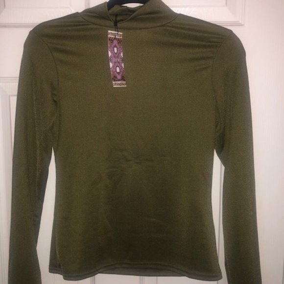 PRE-OWNED. Never worn (tags attached). Boohoo Mock Neck Olive Green Turtle. Form fitting. Womens Size 6.