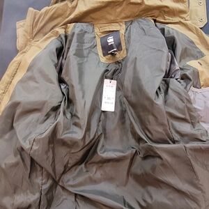Stylish olive green puffer jacket with a cozy design. Perfect for cold weather.