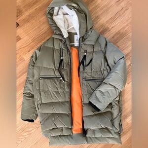 Stylish olive green puffer jacket with a cozy hood. Features zippered pockets for convenience. Viral Amazon jacket! Super warm!