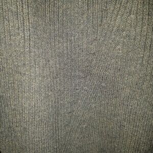 Olive green ribbed cardy with shell buttons down front. Flattering fit with figure hugging shape and long sleeves. Ribbed cotton holds it's shape great.