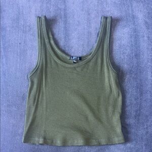 This olive green ribbed tank top offers a stylish and comfortable fit. Perfect for casual outings or layering.
