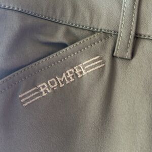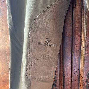 Stylish olive green riding pants with reinforced knee patches. Perfect for equestrian activities. Nearly new condition