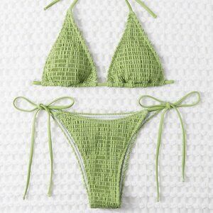 Olive Green Sexy Women's Summer Beach Mono Bikini Set Smocked Micro Triangle Bra
