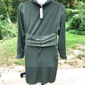 This elegant olive green shirt dress offers a chic and comfortable fit. Perfect for any occasion, it features a stylish button-down front and a flattering waist detail. brand new never used i did remove tags so I put no.