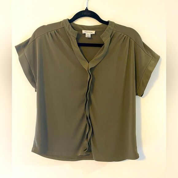 Monteau, Olive Green, Short Sleeve Blouse w/ Décorative Edging, Size M, like new