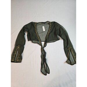 Olive Green Silk Chiffon top, cropped tie front by Magazine Size M New