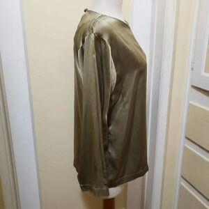 Olive Green Silk Pullover Top by Lisa Anne 1990s Medium