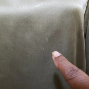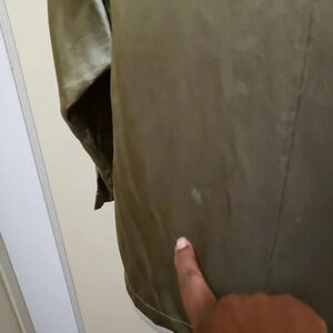She is blemished, not broken! A beautiful silk top in a glorious olive green hue.