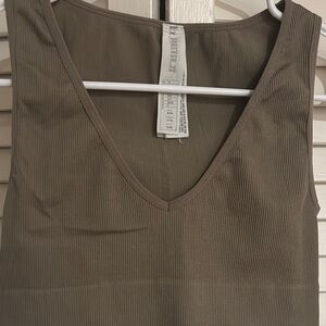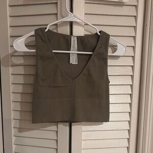 Olive grey forever-21 seamless workout top. Cropped. Slightly low v-neck line. Barely worn and great condition.