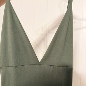 Stylish olive green sleeveless dress with a slit. Perfect for any occasion. In perfect condition. Never worn!