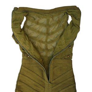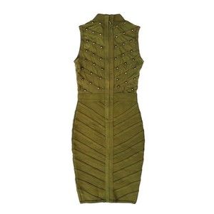 Olive Green Sleeveless Halter Mesh Ribbed Bodycon Bronze Studded Dress Sz Small