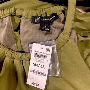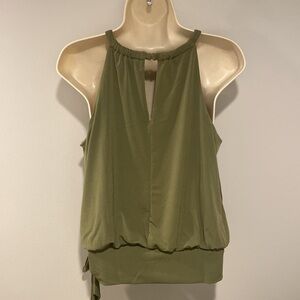 Olive Green Smocked Neck Tank Top with Banded Bottom - Size Small