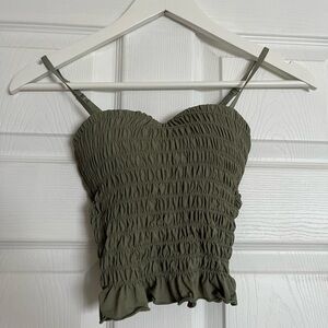 This stylish olive green smocked top is perfect for any occasion. Its comfortable fit and chic design make it a must-have in your wardrobe.