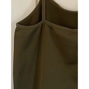 This olive green cami tank top features a sleek, minimalist design and adjustable spaghetti straps. It is versatile for layering or wearing solo