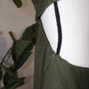 Effortlessly breezy and chic 🌿 This olive green strapless maxi dress features a smocked bodice for a comfortable, stay-put fit and a flowy tiered hem for easy movement. Perfect for warm-weather days, vacation getaways, or layering with a denim jacket or cardigan when the sun goes down.