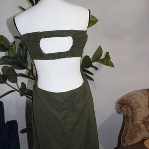 Olive Green Strapless Maxi Dress