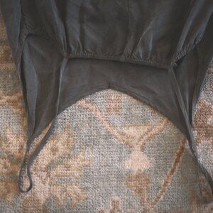 Olive suede slip dress featuring a soft, velvety texture and a flattering midi silhouette. Designed with spaghetti straps, a subtle V-neckline, and a gently draped fit that skims the body. The rich olive hue adds a touch of sophistication, making it perfect for layering or wearing solo. Ideal for both casual outings and dressier occasions.