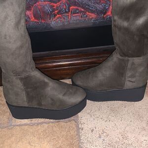 Olive Green Suede Vintage over knee platform boots