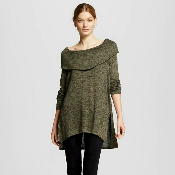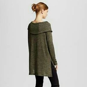 Large Cowl Neck - Drapes over shoulders - Mossimo - Split Sides - High Low Hem is Modern Chic - tones of olive green and black - new with tags