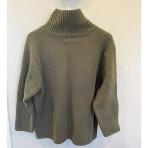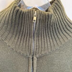 Olive Green Tally Ho Zip Up Cardigan Knit Mock Neck Sweater Jacket